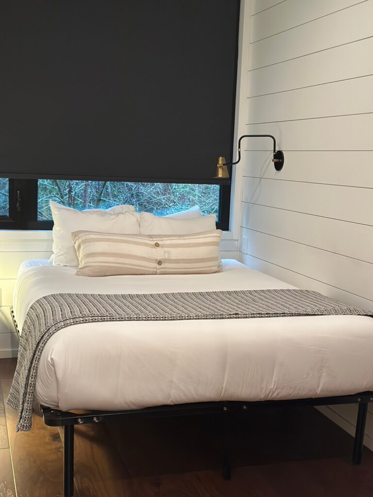 私たちが初めて訪れた「AutoCamp Russian River」で体験したエアストリームの内部は、衝撃的でした。限られたスペースの中に、子連れファミリーが必要とする全てが美しく収まっていたのです。まず、大人もゆったりと眠れる快適なベッドルーム。そして、自炊も可能な簡易キッチンには、調理器具やおしゃれな食器が一通り揃っています。もちろん、清潔なプライベートシャワーと水洗トイレも完備。さらに驚いたのは、強力なエアコンと無料Wi-Fiまで備わっていたことです。