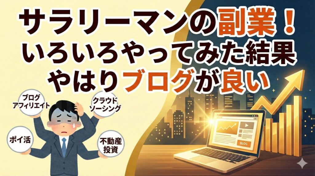 クラウドソーシングやポイ活、不動産投資など、多くの副業を試しましたが、時間的制約や費用対効果の面で、サラリーマンが本気で取り組むには難しいものばかりでした。