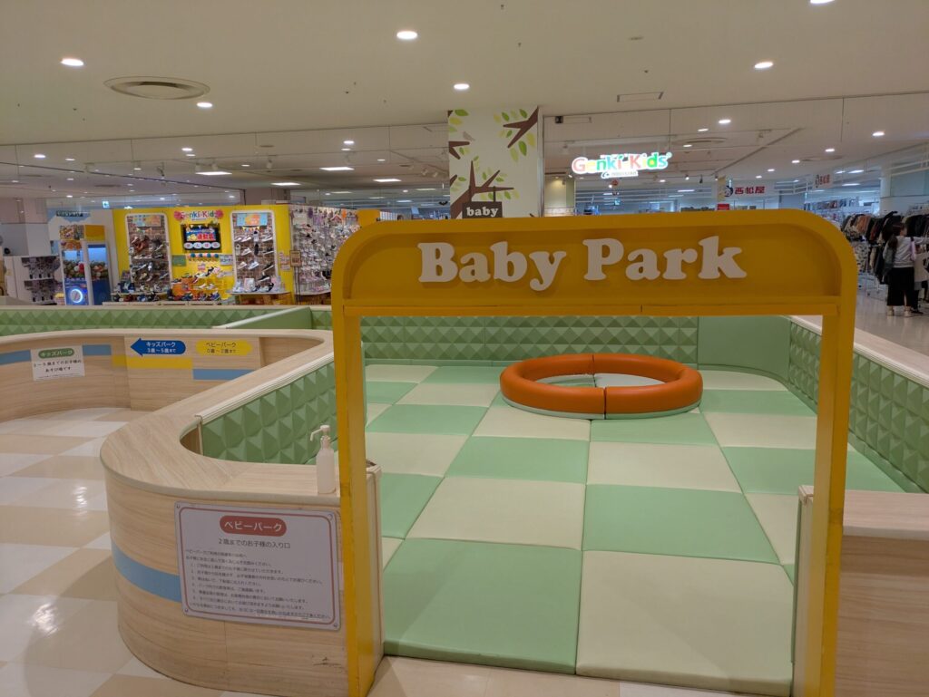 同じくセンター北駅の目の前に位置し、象徴的な観覧車が目印の「モザイクモール港北」。この施設の4階、ベビー・子ども用品が揃うフロアの一角に「Kids Park」はあります。派手な遊具はありませんが、ママが買いものに行っている間にパパの子どもとの触れ合いの場として活用できます。