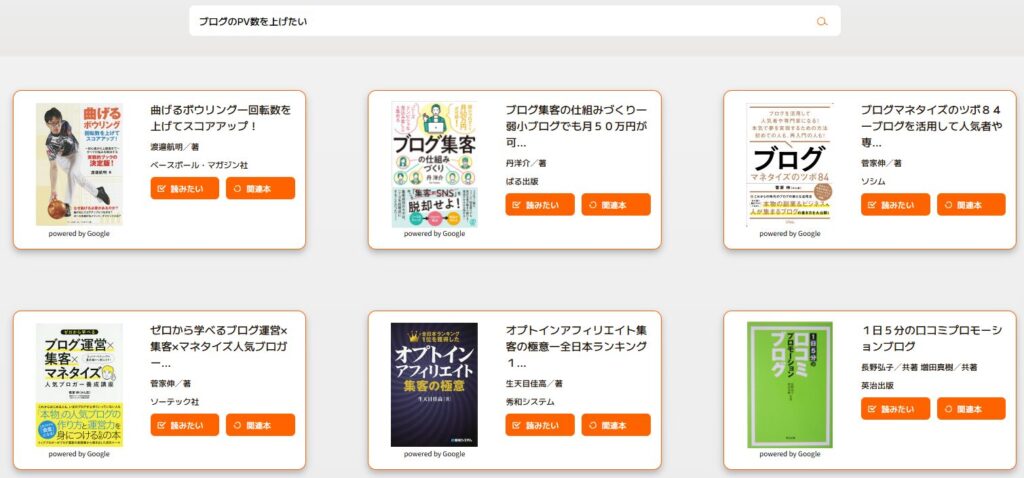 試しに、私が抱いていた「運営しているブログをもっと多くの人に見てもらいたい」という願望をそのまま入力してみました。するとAIは、単なるブログの書き方に関する本だけでなく、その先にあるであろう「マネタイズ(収益化)」に関する書籍までリストアップしてくれたのです。
