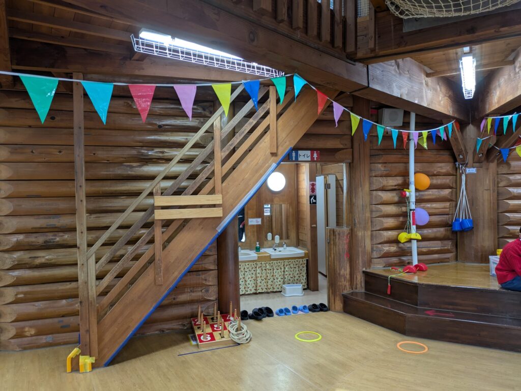 施設の素晴らしさは、ハード面だけではありません。ここで働くスタッフの方々の温かい対応も、特筆すべき魅力の一つです。実際に私の子どもが、遊んでいる最中に興奮して鼻血を出してしまったことがありました。その際、スタッフの方がすぐに駆け寄り、さっとティッシュとゴミ袋を手渡しながら「ぶつかっちゃったかな?」と優しい気遣いの言葉をかけてくださりました。その心遣いに、とてもハートウォーミングになった私。また、施設内には、子どもたちを見守る親が座れるスペースが随所に設けられており、付き添いの大人への配慮も感じられます。ログハウスの外にはブランコも設置されているため、遊びの選択肢が豊富なのもありがたい点です。子どももログハウス内でのポータブルゲーム機器は禁止されているので、大人の方も不必要なスマホ閲覧は控えるようにしましょう。