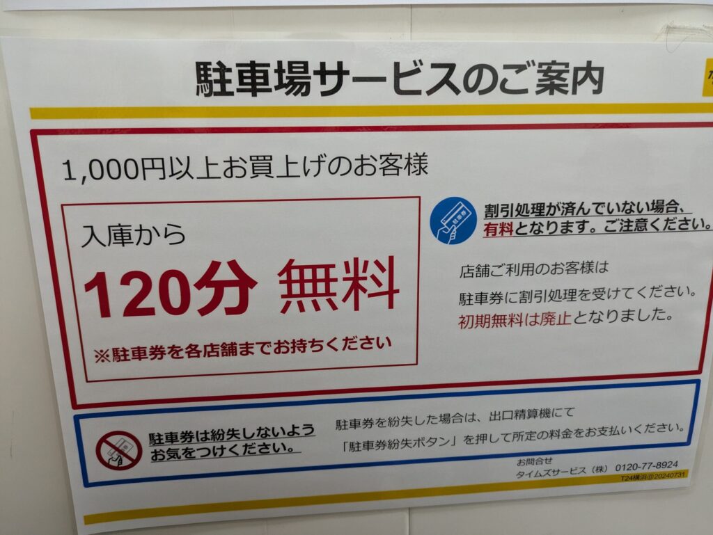 オリンピックの駐車場は、目的地であるこどもログハウスまで歩いて10分弱という、非常に便利な場所にあります。驚くべきはその料金体系です。店内で1,000円以上のお買い物をすれば120分無料で、もし無料時間を超過した場合でも、当日の最大料金は500円と非常に良心的です。家族で電車に乗って移動する交通費を考えれば、むしろ安く済む可能性も高く、お財布にとても優しい選択肢と言えるでしょう。オリンピックは日用品や食料品も取り扱うスーパーマーケットなので、帰りに必需品の買い出しを兼ねれば、1,000円という金額は無理なくクリアできるはずです。