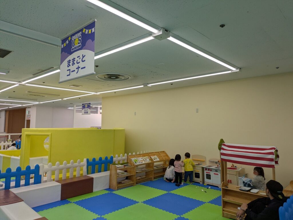 ここからは、実際に私たちが体験してきたキッズランドUS 横浜希望ヶ丘店の魅力を、3つの主要エリアに分けて詳しくレポートします。それぞれのエリアが持つ独自の楽しさに、子どもたちは夢中になること間違いなしです。飲食の持ち込みは可能なのですが特にこの施設で印象的なのが、飲食できるスペースがふんだんに設けられております。至る所に座る場所がありますよ。
