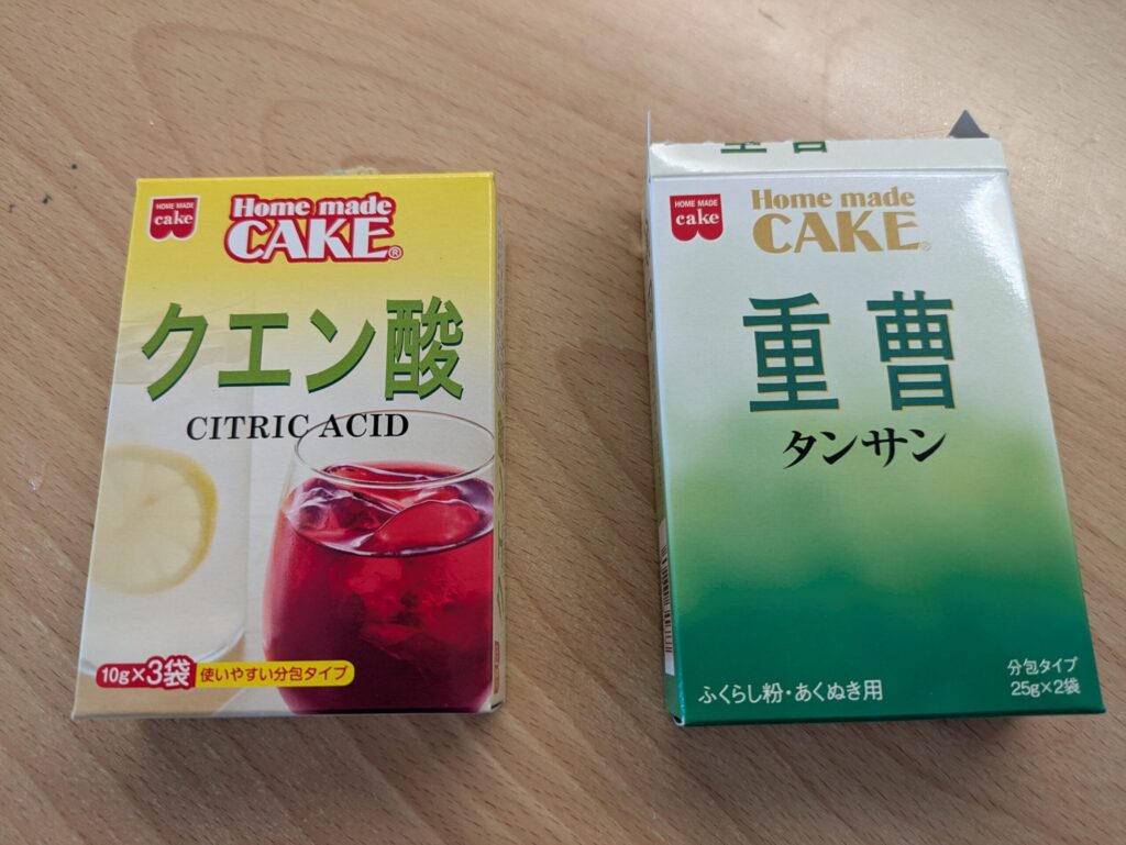 重曹とクエン酸を使用する際は、必ず「食用」のものを選んでください。 スーパーの製菓コーナーなどで手軽に購入できます。掃除用のものは口にすることができないため、絶対に使用しないでください。