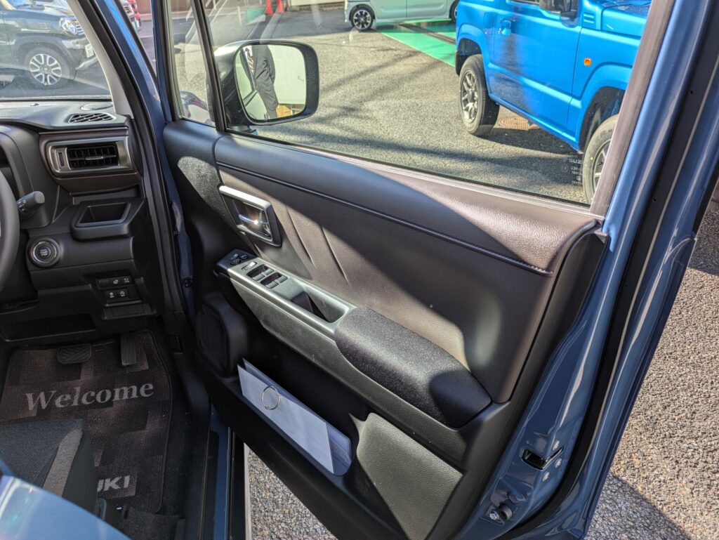 次に、ドアの内張りに手を触れてみると、その質感の違いにハッとさせられます。旧型ではオプションのアップグレードパッケージであったブラウンのアクセントカラーが標準装備となり、しっとりとしたスエード調の生地が使用されています。プラスチックの質感が目立った旧型と比較すると、その差は歴然です。写真に影が入ってしまい申し訳ありませんが、高級感が格段に増し、車内で過ごす時間の質を高めてくれる、非常に効果的なアップグレードだと言えます。