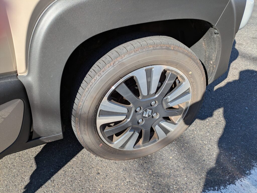 一方で、ヘッドライトがスタイリッシュになった分、足元には新たな遊び心が加えられていました。新デザインのアルミホイールは、非常に凝ったデザインで、車全体の質感を高めています。例えるならば、びしっと決めたスーツの袖口から、お洒落なカフスがちらっと見えているような感覚です(なんとか伝えたい)。シンプルに言えば、かっこよくなったけども相変わらず遊び心あるなーという感想です。
