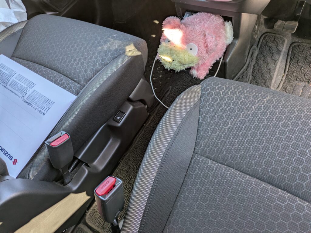 ドアを開けて乗り込むと、まず目に付くのが、センターコンソールのデザイン変更です。新型では上下に分かれた2段式のデザインが新設されています。これにより、スマートフォンや小物を置くスペースが格段に増え、収納の利便性が飛躍的に向上しています。旧型乗車中に、稀に狭い駐車場で助手席側から乗り降りすることがありますが、本当にレアケースなので、ウォークスルー性能よりも、日常的に享受できる収納力アップの恩恵の方がはるかに大きいと感じました。我が愛車の旧型クロスビーのセンターポケットにはヤドンが鎮座しております。