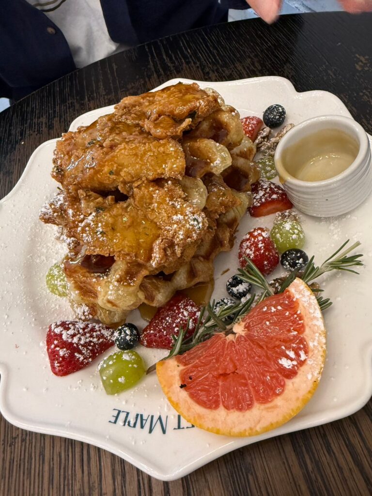 お洒落なブランチを楽しみたいなら「Sweet Maple」がおすすめです。甘じょっぱいチキン&ワッフルは一度食べたら忘れられない名物メニュー。マックグリドルに似た中毒性があります。